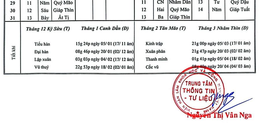 Bộ số lịch ghi rất rõ thời điểm của từng tiết khí, thường chính xác tới phút.